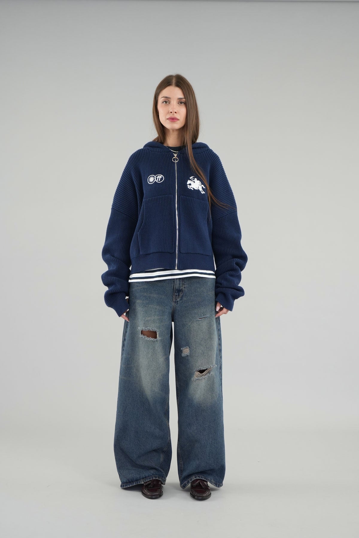 Emblem Navy Zipper Knit