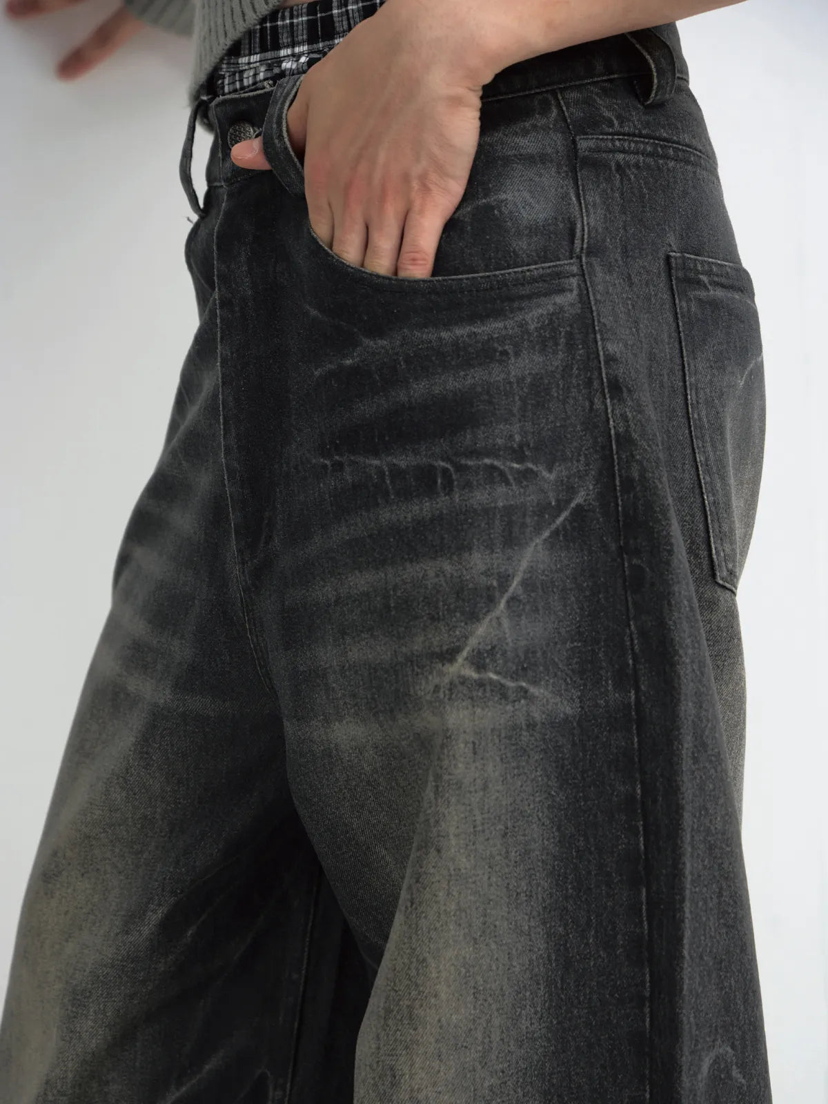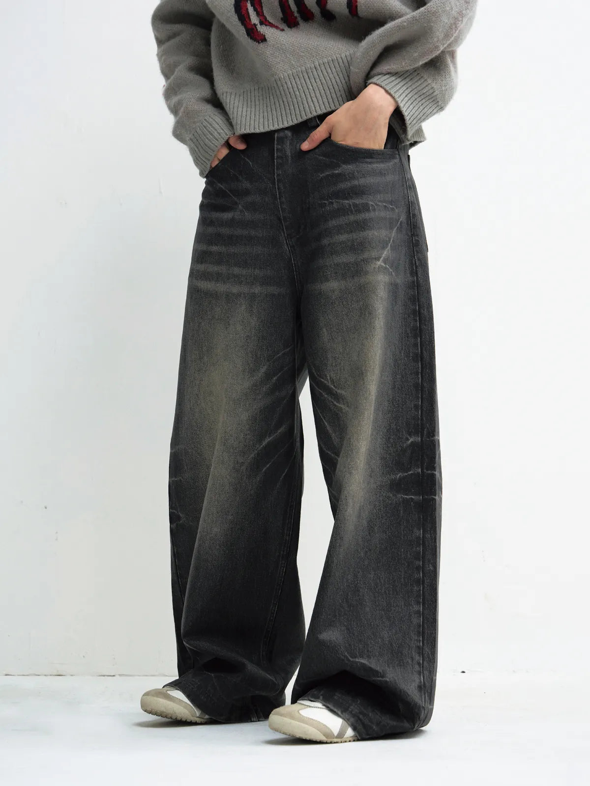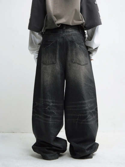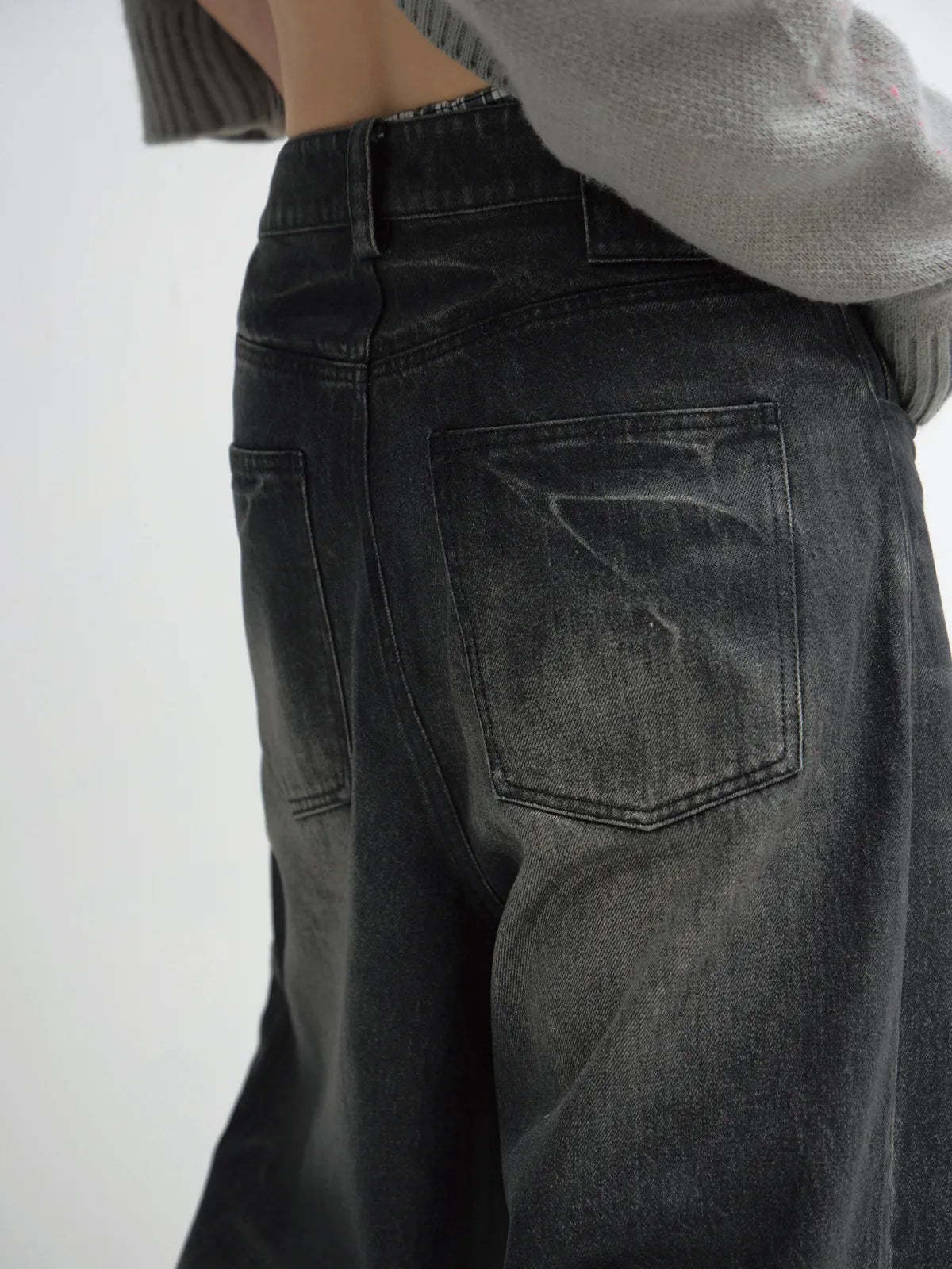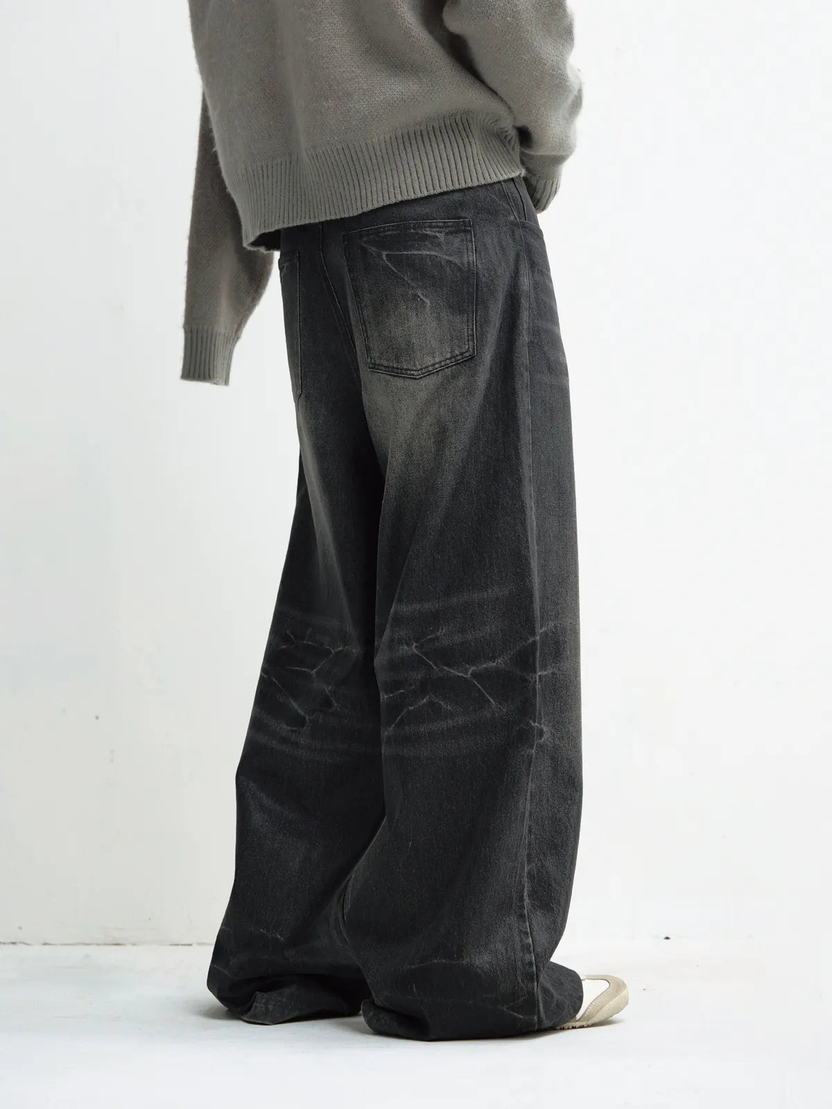 Peoplesense Hand Brushed PU Coated Wide Leg Jeans