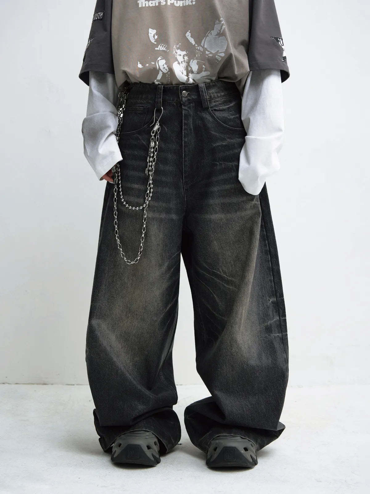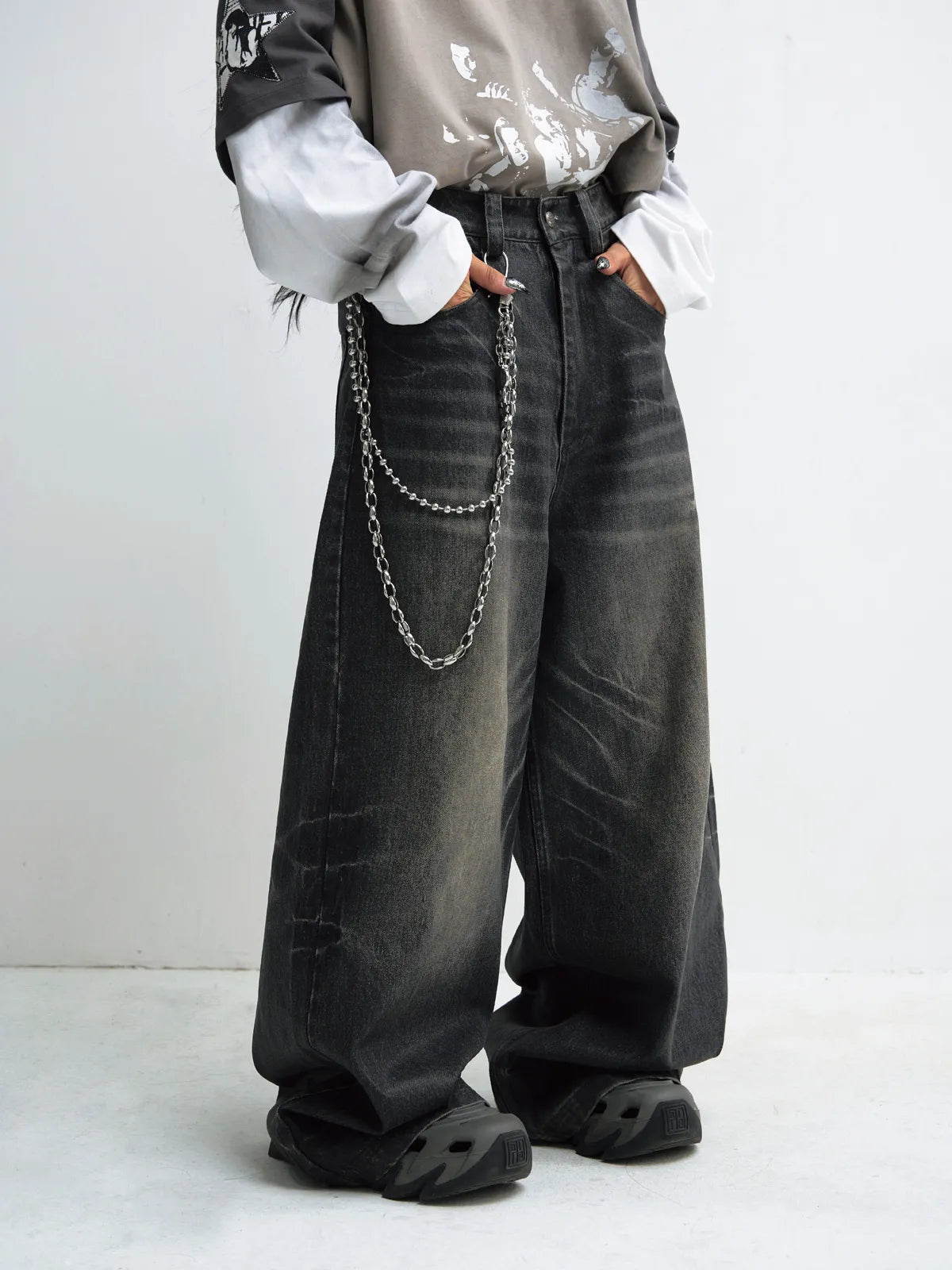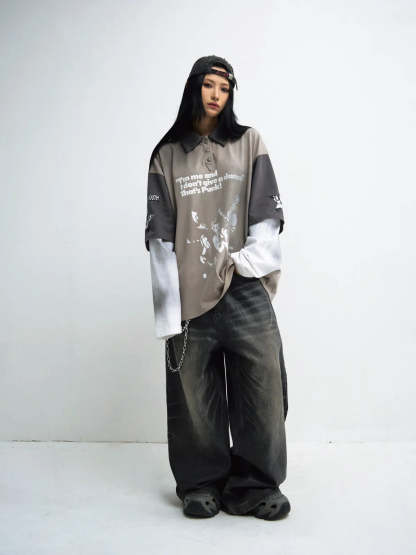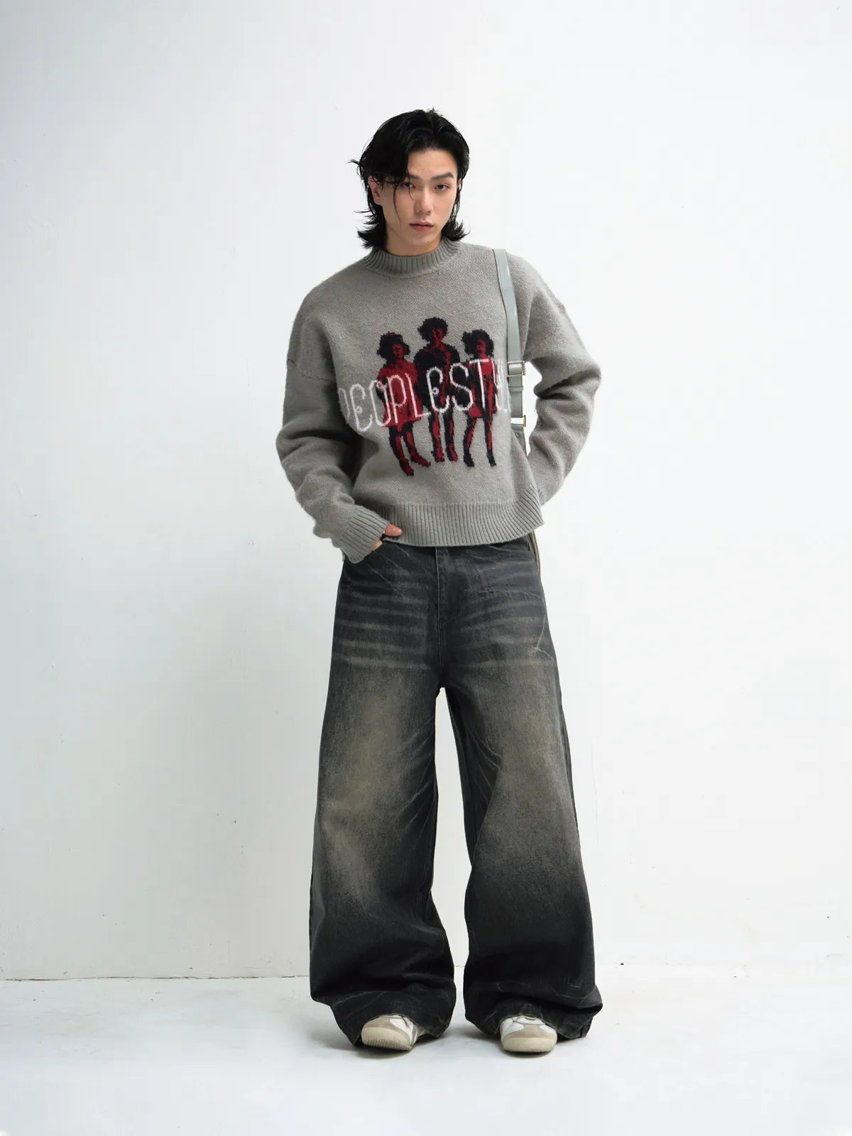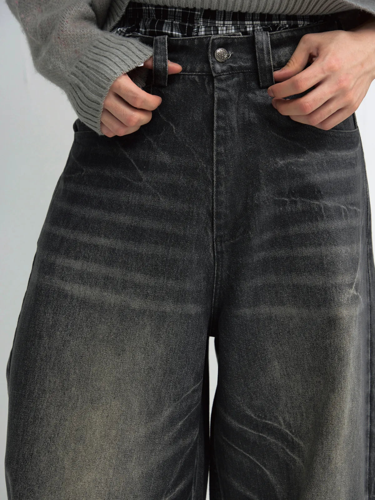 Peoplesense Hand Brushed PU Coated Wide Leg Jeans