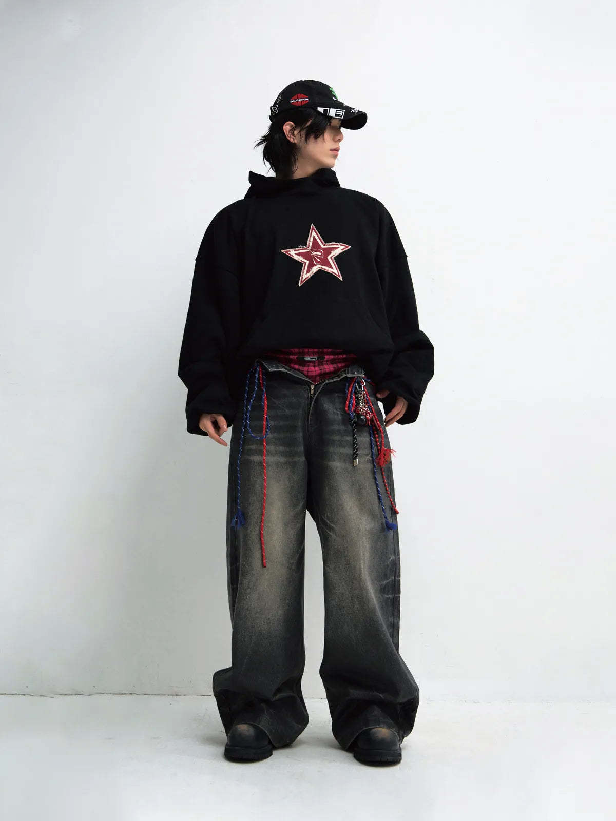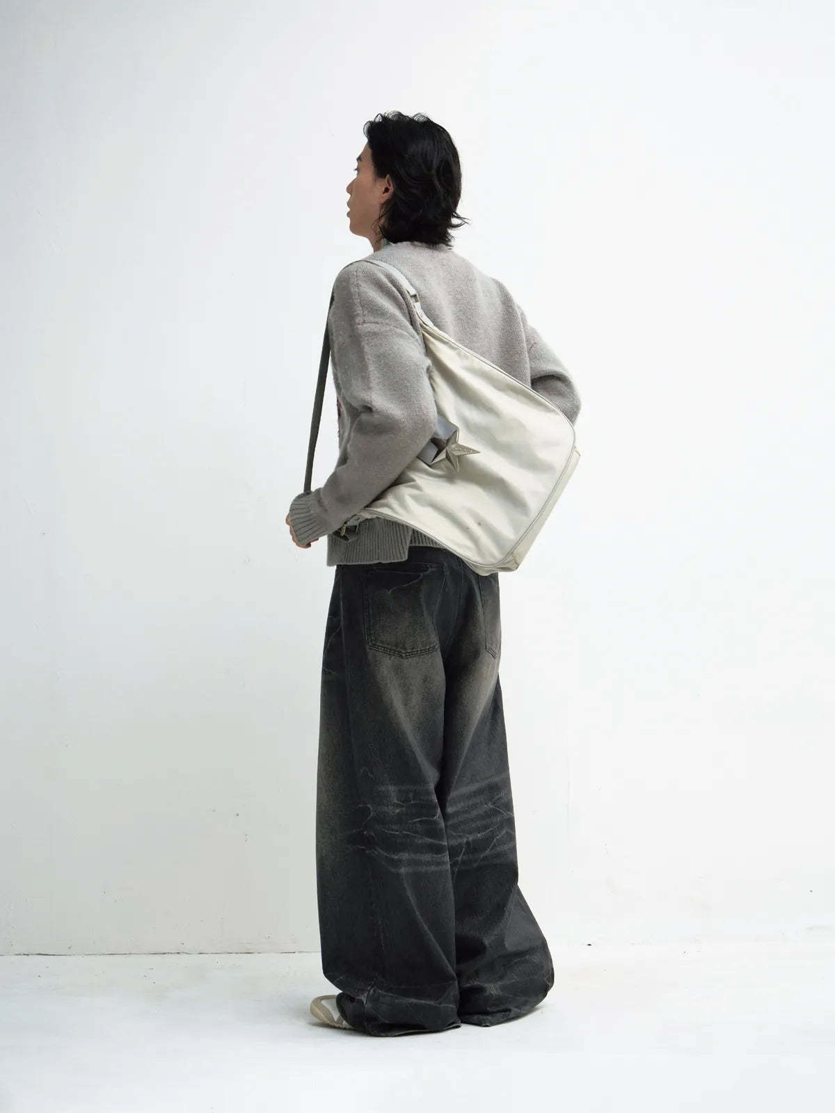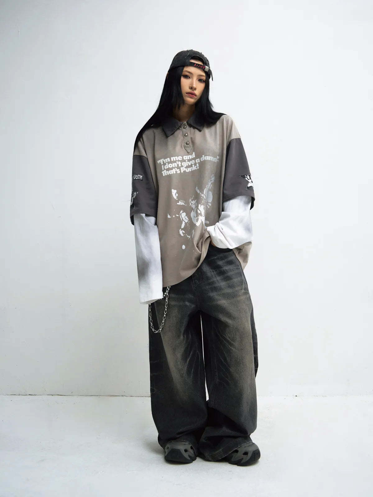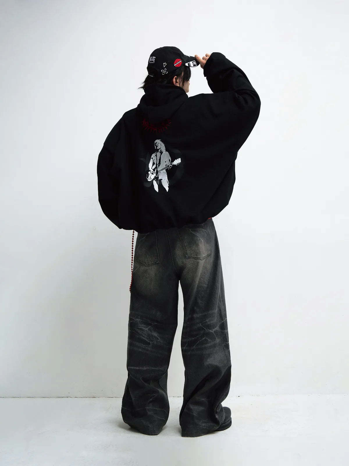 • Male model is 180cm/5′11″, weight 68kg/150lbs, waist 74cm/29in, hips 95cm/37in, wearing size L.